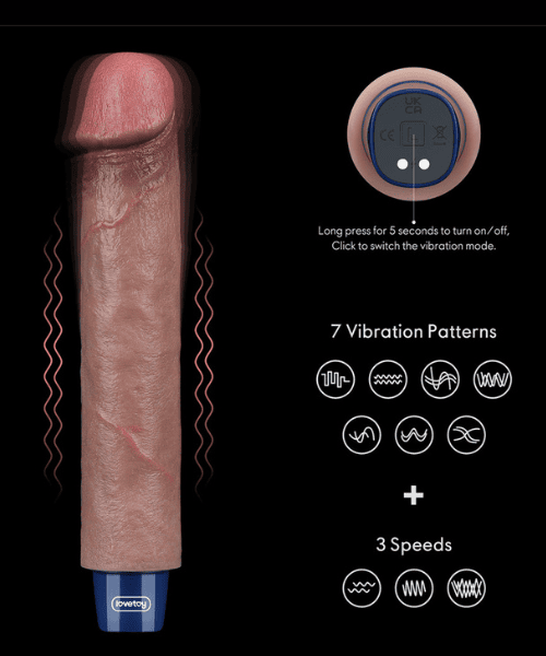 Pênis Realístico Dupla Densidade com Vibração – 22 cm Penetráveis, 22,8 x 4 cm Totais – LOVETOY Dual Layered Platinum Silicone